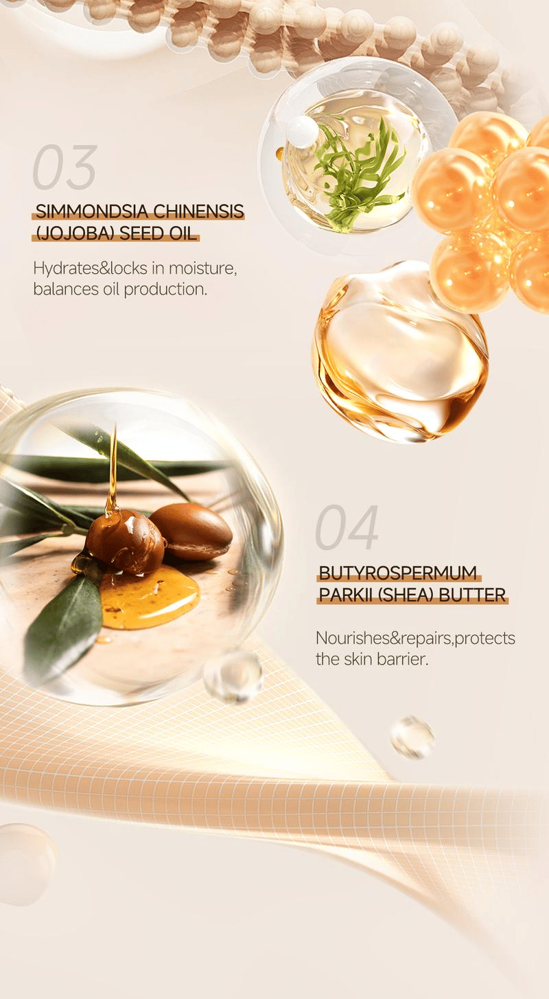 šæĀ Jojoba Seed Oil & Shea ButterĀ ā Nourishes, balances oil, and repairs skin.