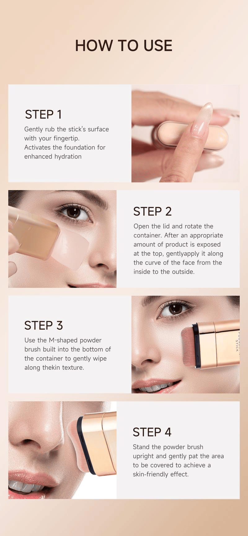 2ļøā£Ā ApplyĀ ā Swipe along face curves from inner to outer areas.